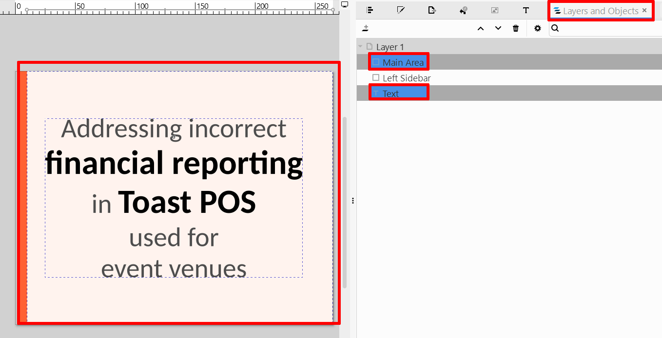 Name it «Main Area» in the «Layers and Objects» panel.