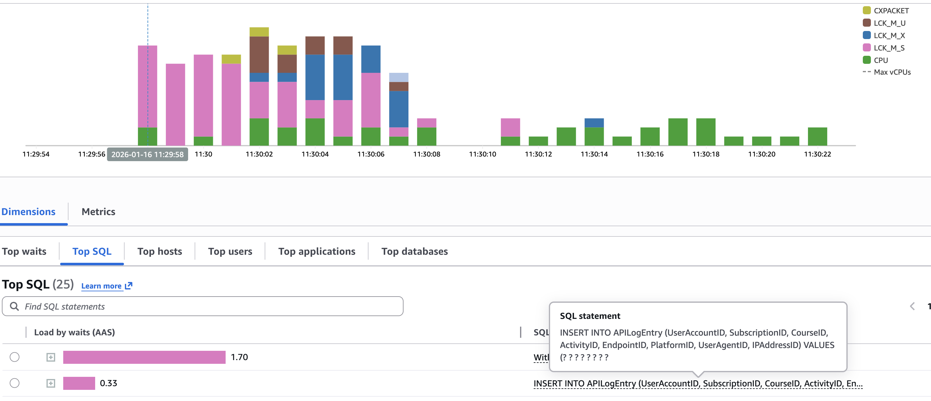 S↑᛭: the S↑, occupying the first row in the «Top SQL» section of ߷₂
